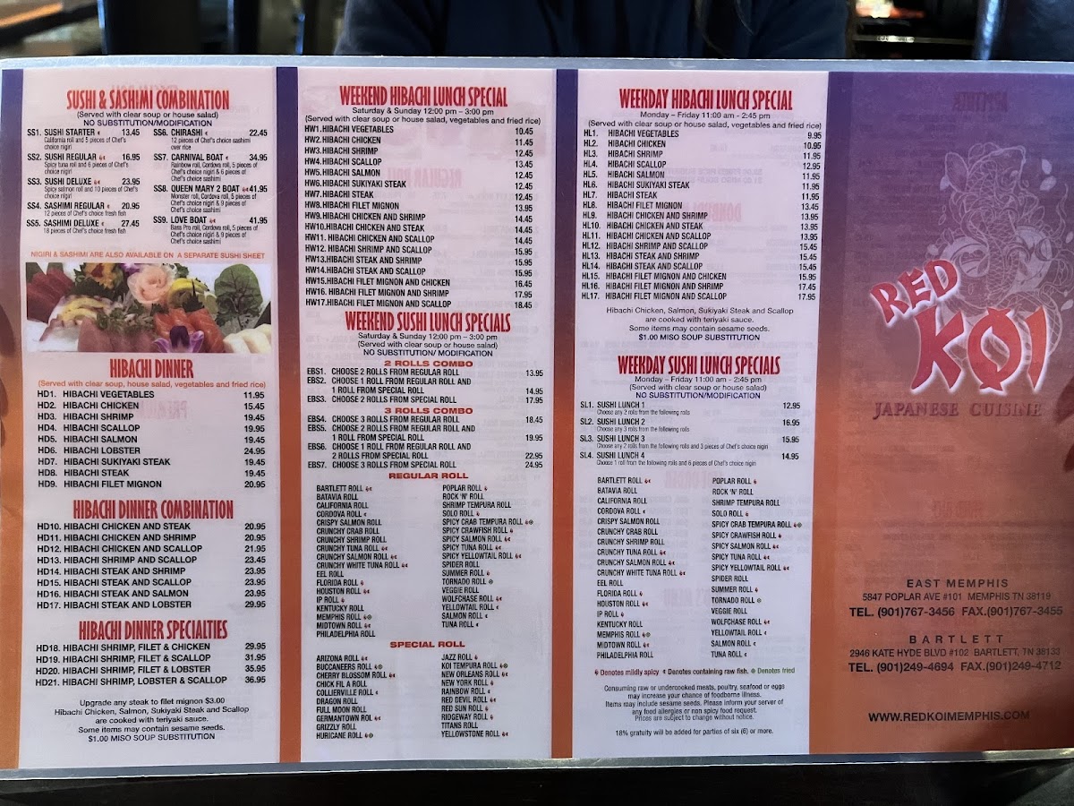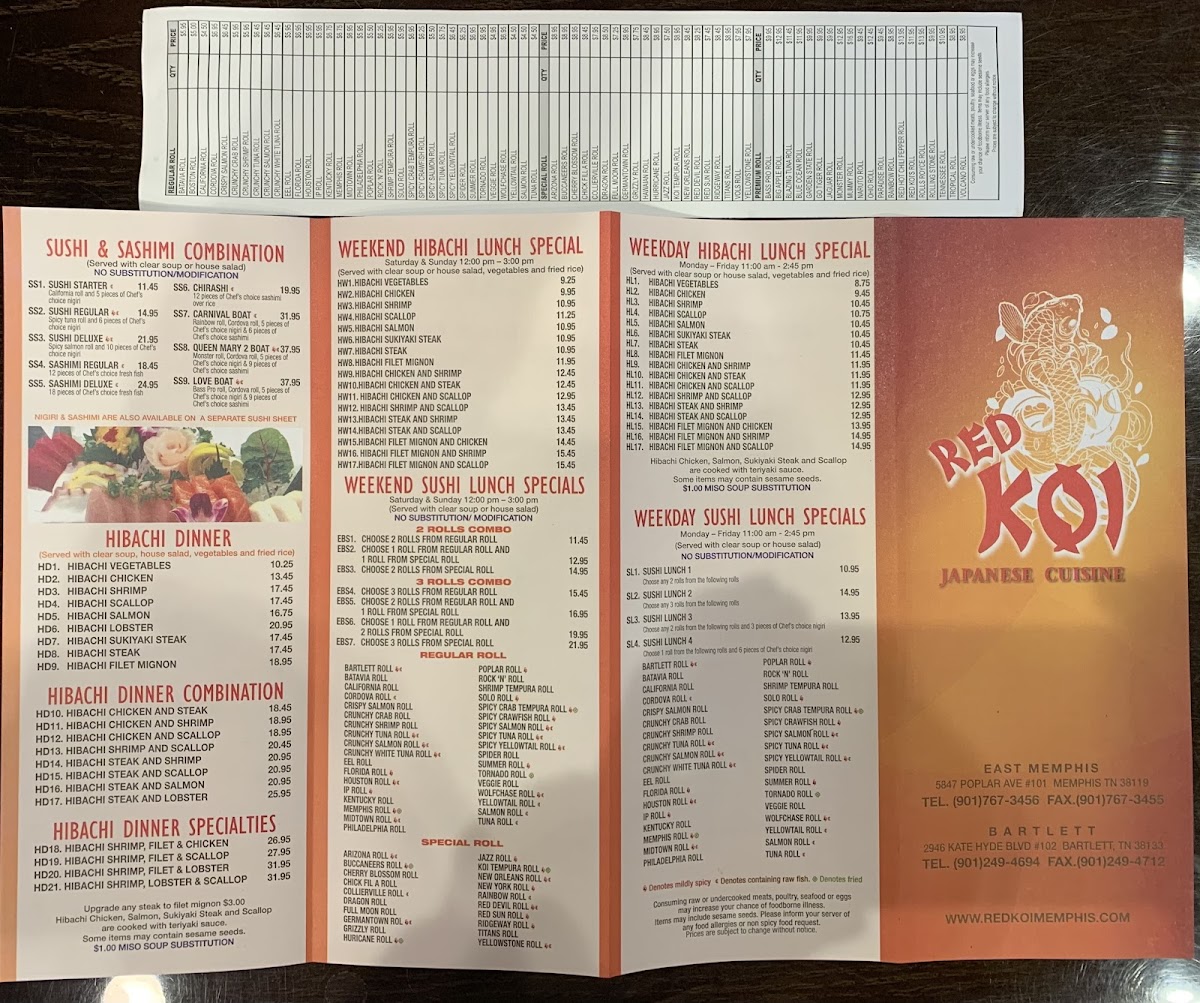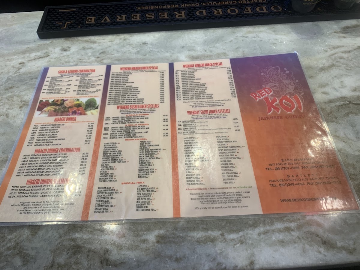 Customers rave about the quality and portion sizes, with many praising the sushi rolls as some of the best in Memphis. The attentive service enhances the experience, making each visit memorable. Bring friends, enjoy their specials, and discover a new favorite at Red Koi!